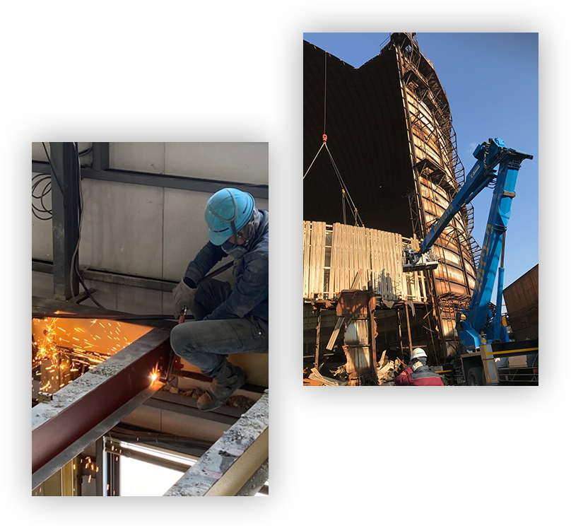 立体駐車場、屋上看板、鉄骨解体(ガス切断)を主にしています。